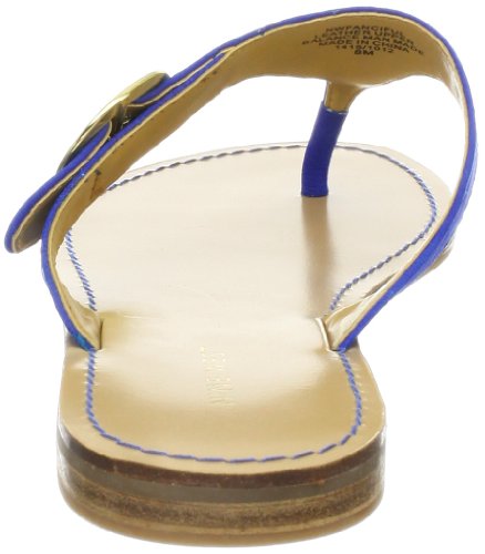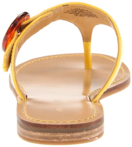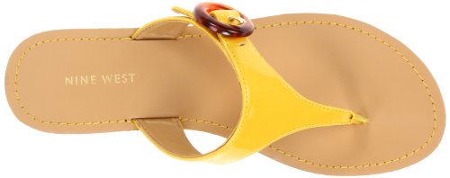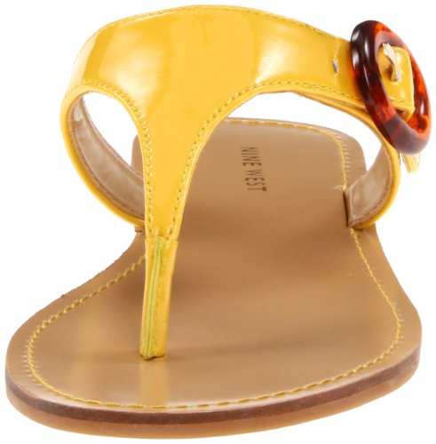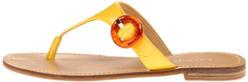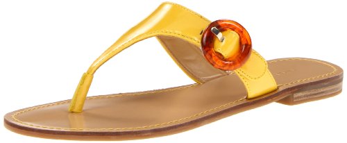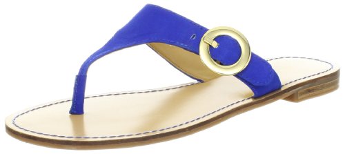 Elegant lines, a bold buckle detail, and a slender sole all lend a refined atmosphere to this architectural thong sandal.