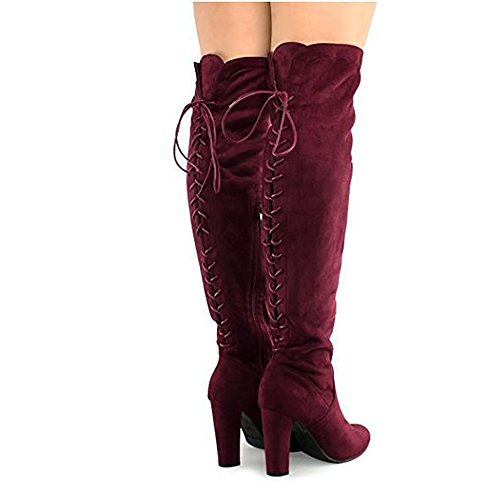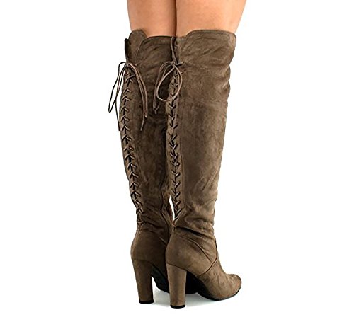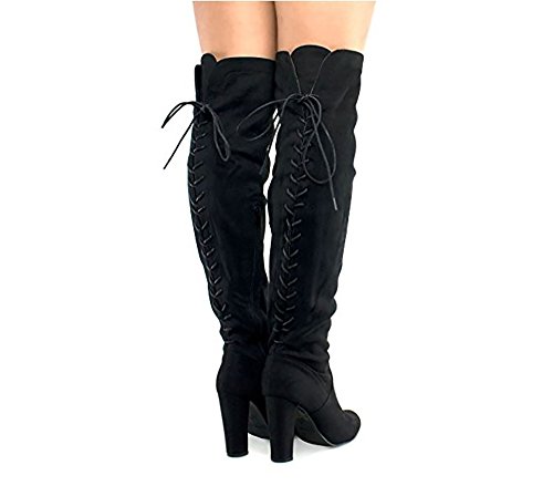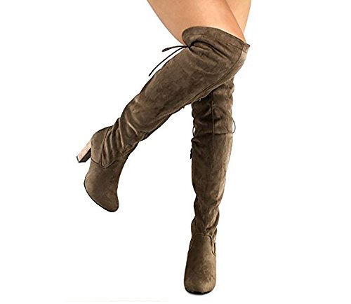 Product Description Trendy and edgy Over the Knee boots are a modern staple shoe to complete any shoe lover's closet. Made from vegan faux suede and a manmade synthetic outsole, you can strut in confidence. You can't go wrong with these trendy sexy thigh high boots! 0