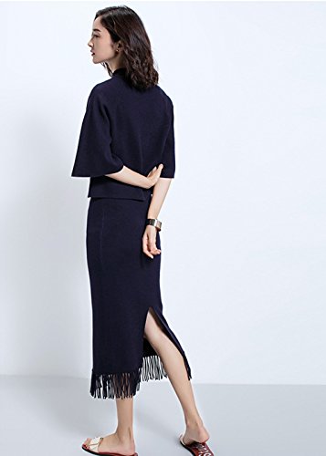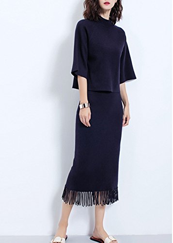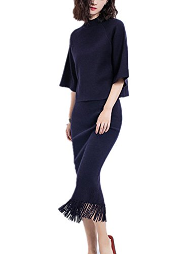-. Title : Caldol気品溢れ セットアップスカート フリンジロングスカート 細見え 無地 ニットセット 5分袖 セットアップ レディース