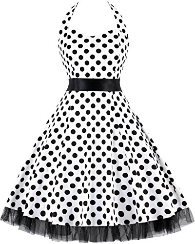 OTEN Vintage Halter Party Dresses For Women Rockabilly Cocktail Evening Prom Vintage dress sewing with halter design,perfect for cocktail party,summer outdoor,garden,picnic,and Rockabilly prom evening.