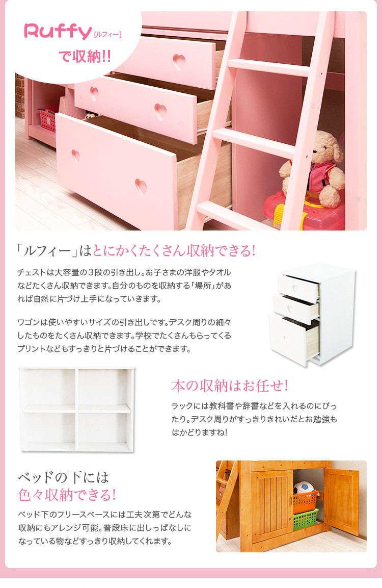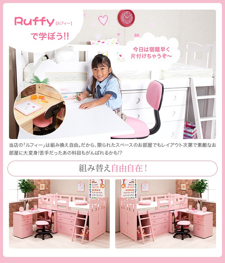 組み変え自由自在のシステムベッド【ルフィー-ruffy】システムベッド 学習机