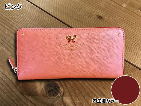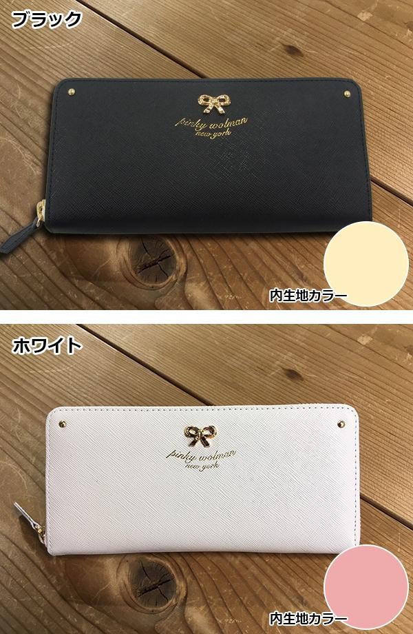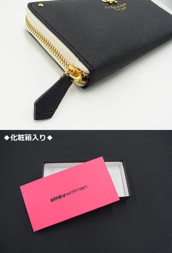 大きく見開くラウンドファスナータイプで中身が見やすい♪pinkywolmanの長財布です。仕切りやカード収納がたくさん付いているので、収納力もバツグン!!角シボのエンボス加工を施した牛革に控えめなリボンの金具を配置し、大人な仕上がりに。pinkywolmanのロゴの刻印もアクセントになっています。自分用はもちろん、プレゼントにもおすすめです♪ |