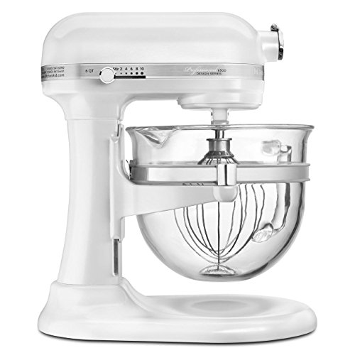 Mix dough for nine dozen cookies, four loaves of bread or seven pounds of mashed potatoes in a single batch using the KitchenAid Professional 6500 Design Series Bowl-Lift stand mixer. The bowl-lift design features a quiet and robust DC motor and a large capacity that easily mixes recipes. With ten different speed settings you can mix, knead, and whip ingredients with ease. The clear six quart glass is easy to see through and features a handle for carrying.6 quart capacity