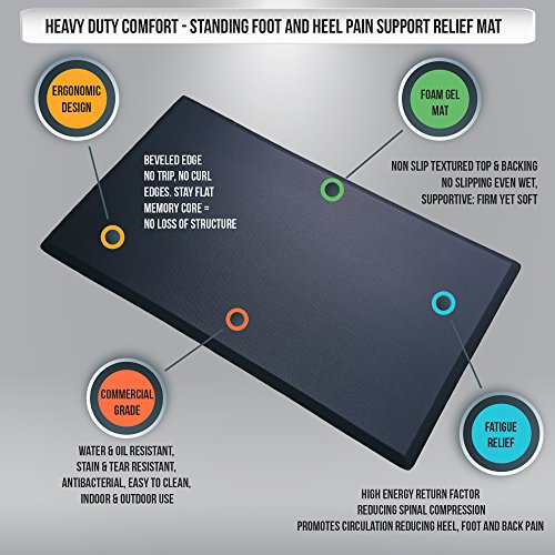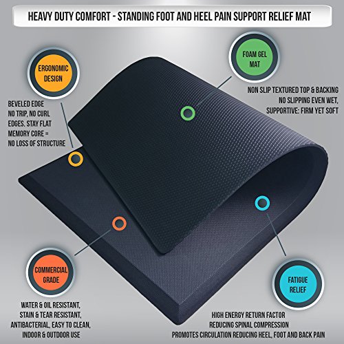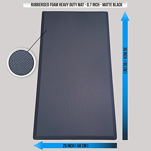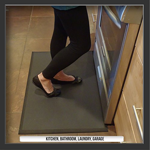 - Feature : ★ ULTIMATE FATIGUE RELIEF - Relieves foot, heel, arch and back pain up to 80% caused by hardwood flooring. Heavy duty / firm but soft mat, perfect for all weight classes, reducing spinal compression. Anti-Fatigue relief for those standing up to 8 hrs. Give your feet the break they deserve ! / ★ ALL-PURPOSE / ALL WEATHER - Domestic / Commercial / Industrial use rug; for Chef in Restaurant Kitchen, Laundry, Bathroom, Cashier, Deli Counter, Salon / Barber, Stand up Computer Desk or Garage. Also used as cushion pad for gym, exercise, boat or workshop. Perfect for Indoor or Outdoor. / ➤ INDOOR / OUTDOOR - Heavy Duty, Large & Thick (20 x 36 x 0.7 in.) Full polyurethane rubberized closed cell construction, waterproof, oil resistant, tear resistant, durable and stain resistant. Easy to clean, maintain and decorative to any Kitchen. Comfortable barefoot or with shoes. / ✔ SAFETY - Beveled and rounded edge to reduce tripping, non slip textured surface and backing to eliminate slipping even when wet. Antibacterial commercial food grade specification. Stay flat design means the edges will never curl. / ★ LIFETIME WARRANTY - AirMat will provide you with muscle and discomfort relief for many years and the Stay flat memory core ensures no loss of structure over time. Try it Risk Free !