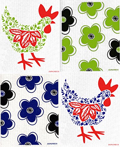 Swedish Dishcloth, Set of 4 BLUE & GREEN - Hens & Gardens