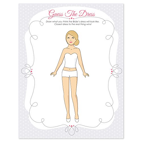 How to Play Guess the Dress Bridal Shower Game: Hand one game card out to each guest, along with a pen or pencil. If you really want to get crazy, offer them some glue, glitter and rhinestones - then sit back and enjoy the fun. Give your bridal shower guests a few minutes to draw - or design - what they think the bride's dress will look like, then have the bride pick a winner. The one closest to the real dress, wins!