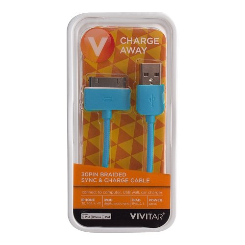 -. Title : Vivitar 3 ft Braided 30 Pin Cable Sync & Charge (Blue)