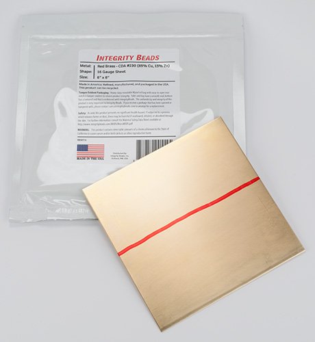 Red Brass 16 Gauge Sheet - 6" x 6"