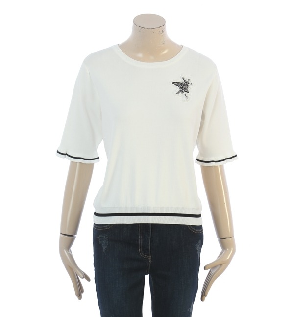 SATIN, 심플한 디자인에 큐빅장식으로 포인트를준 니트 티셔츠입니다