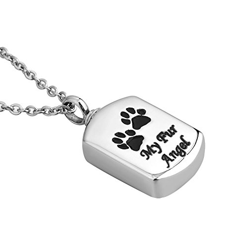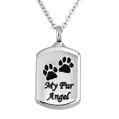Mel Crouch Heart Love My Fur Angel Urn Necklaces Pet Cat Dog Paw Print Memorial Cremation Ashes Ash Holder Keepsake Stainless Steel Jewelry Pendant