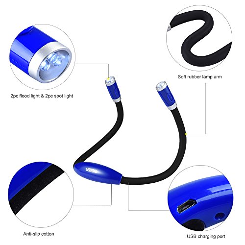 Ledgle Neck Book Light LED Reading Lamp Rechargeable, Hands Free, 4 LED Bulbs, 4 Adjustable Brightness, USB Cable Included for Reading in Bed or Reading in Car