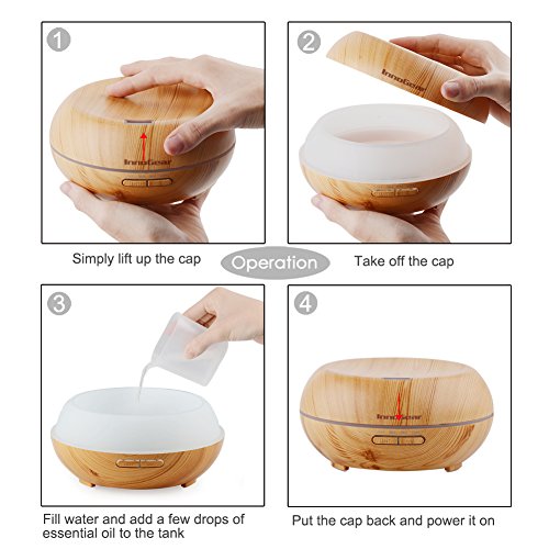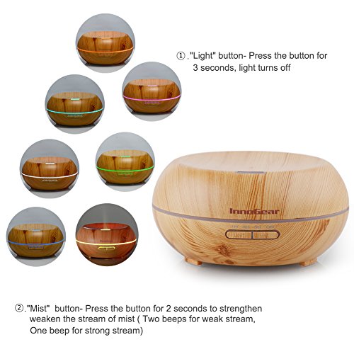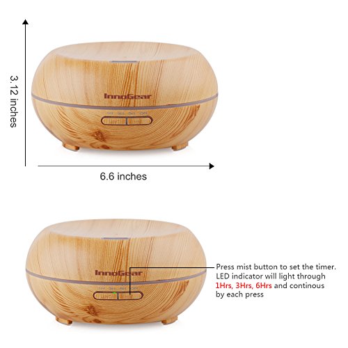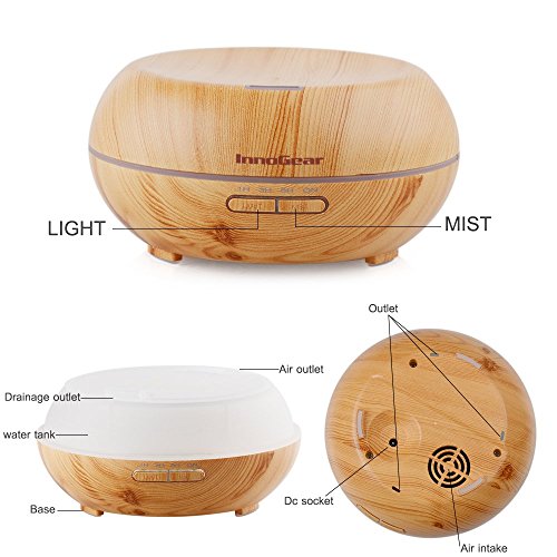 InnoGear 200ml New Plastic Wood Grain Aroma Diffuser is in gorgeous design. It fits in with any decor.The color changing lights make it beautiful in low light rooms. Most of all, this stylish cool mist humidifier adds moisture to your air to eliminate dryness and help with your dry chapped skin, chapped lips and dry sinuses. Add a drop of your favorite essential oil to give your room a fresh, clean scent.