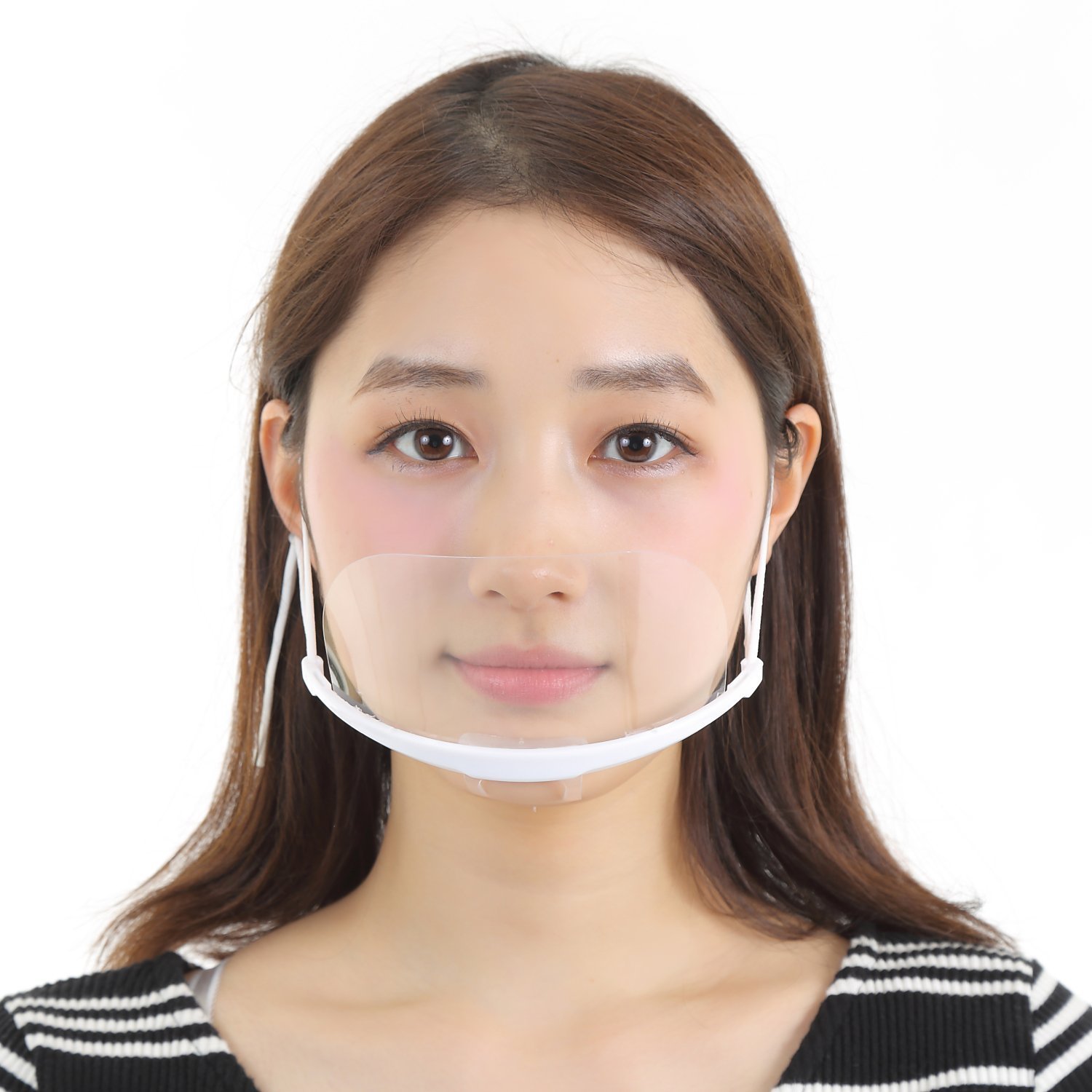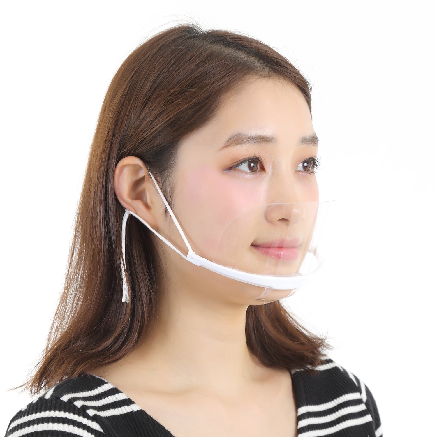 A transparent plastic mask prevents splashing and is recommended for face-to-face sale of department stores, supermarkets, restaurants and retail stores.