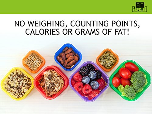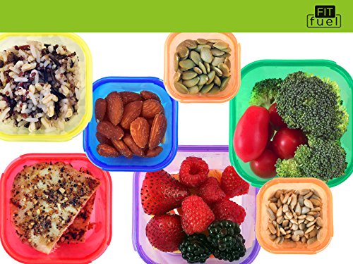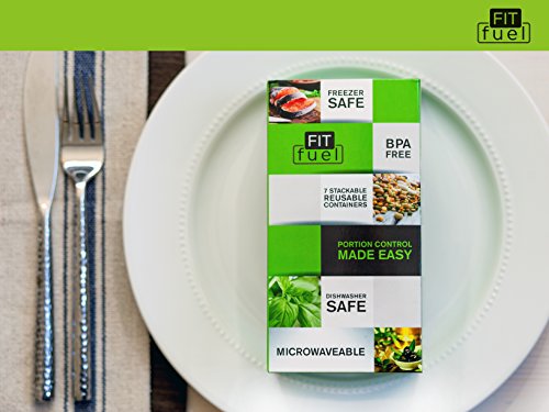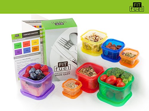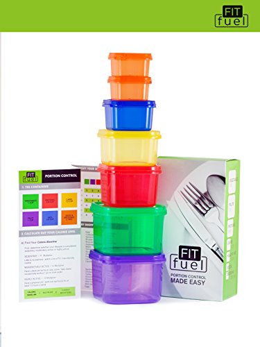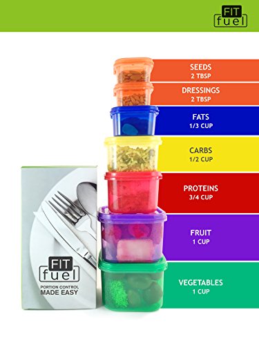 Fit Fuel 7 piece Portion Control Containers for Weight Loss and Diet Programs perfect for 21 day healthy eating program. Perfect food measurements to support healthy fitness lifestyle.