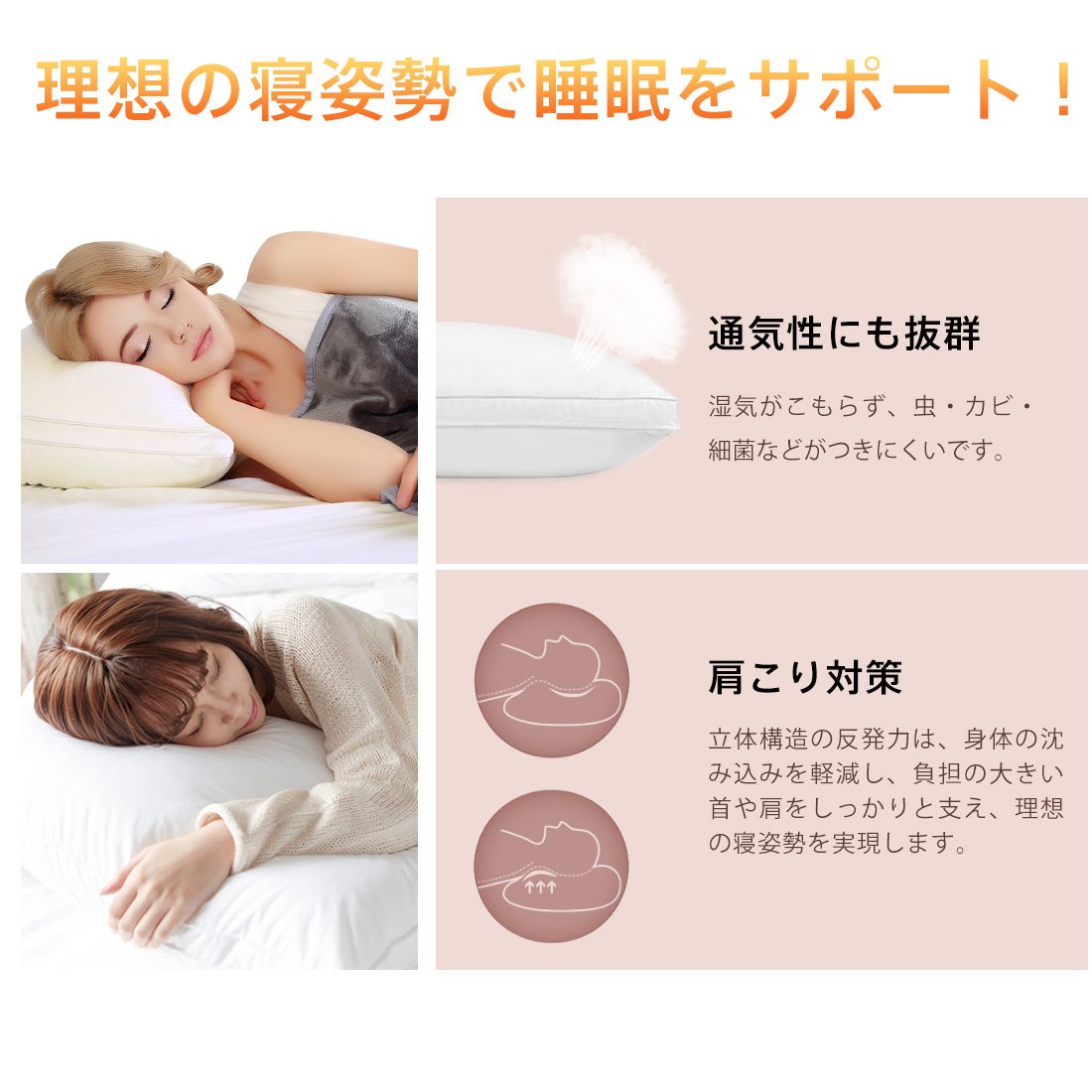 The high-level three-dimensional structure, softness like feathers and moderate repulsion force can support an ideal sleeping posture by firmly supporting the neck and shoulders with a heavy burden.