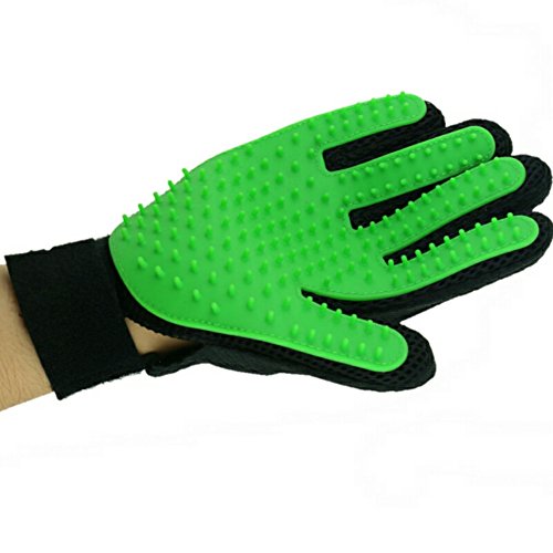 Gentle rubber massages and stimulates circulation. Removes loose pet hair, and traps it in the glove so that no fur goes flying. Stop chasing your pet! Let them come to you for grooming they'll love.
