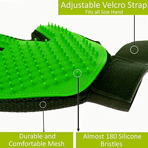 RECOMMENDED BY PROFESSIONALS - Perfect for All Coat Types - long or short hair, wet or dry and adjustable velcro strap fits all size hands with flexible mesh, DESIGNED WITH SOFT RUBBER TIPS to gently fix nasty tangles and mats while lifting dirt and dust from the fur, IT IS WASHABLE, Simply dry under the Sun after using