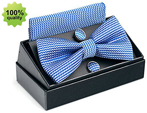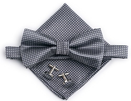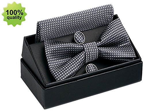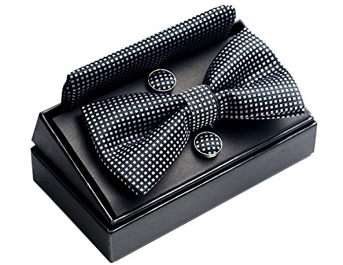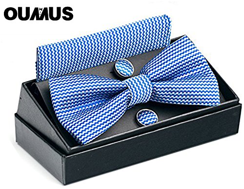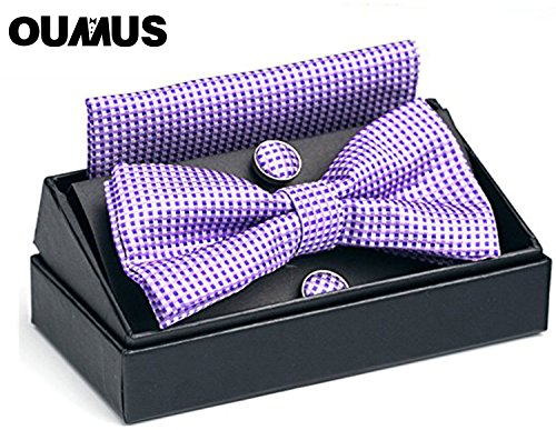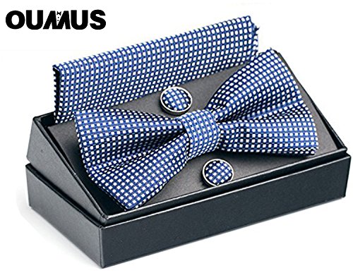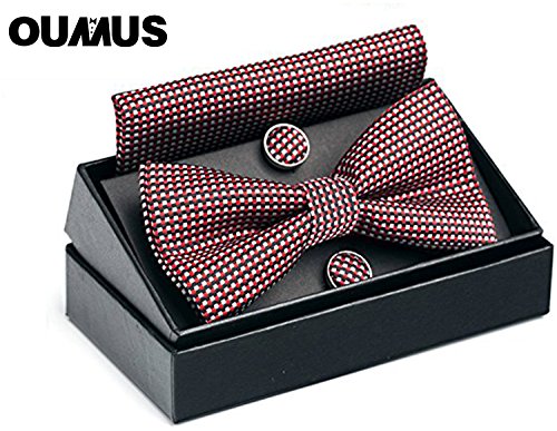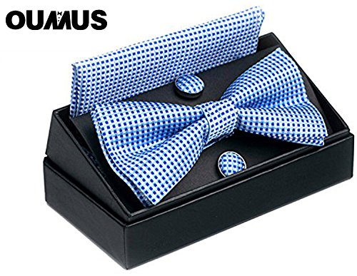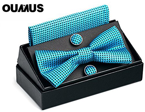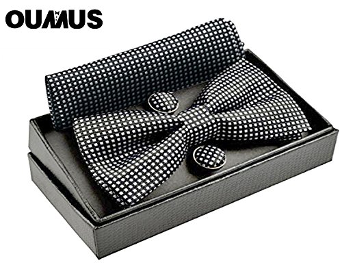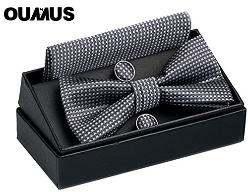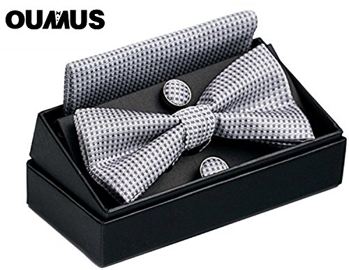 | OUMUS Pre-Tied Bow Tie / Pocket Square Cufflinks Gift Set |