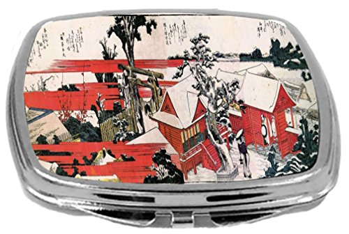 Rikki Knight Compact Mirror, Katsushika Hokusai Art Red Houses, 3 Ounce