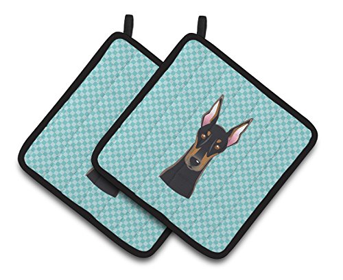 Caroline's Treasures Checkerboard Blue Doberman Pair of Pot Holders BB1183PTHD, 7.5HX7.5W, Multicolor