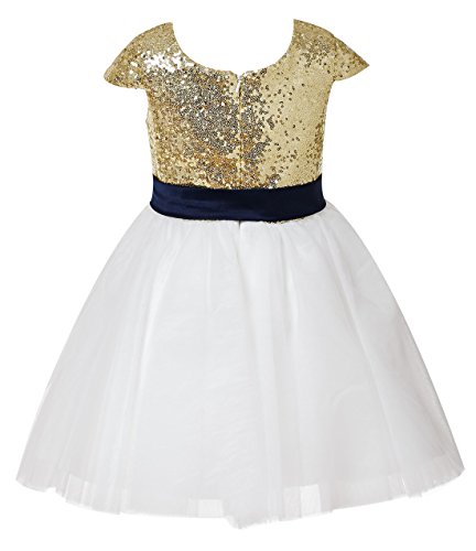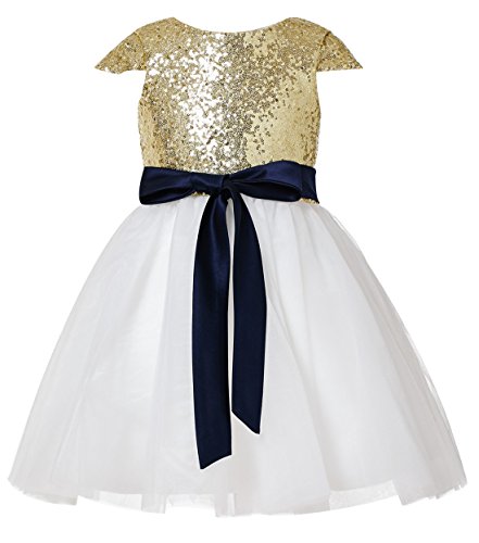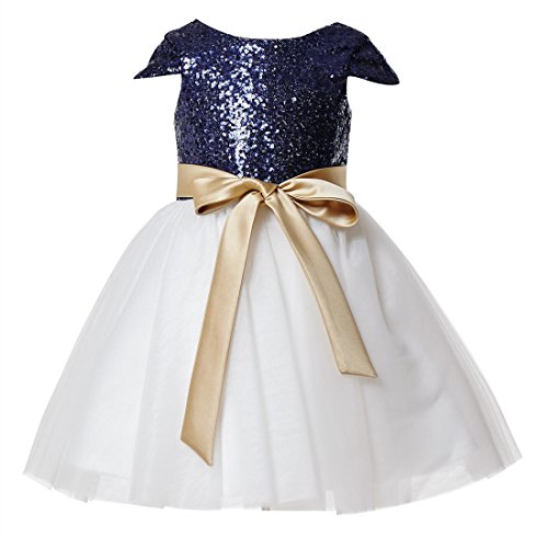 Sequin top with tulle skrit ,with a navy blue sash ,hidden zipper closure ,knee length