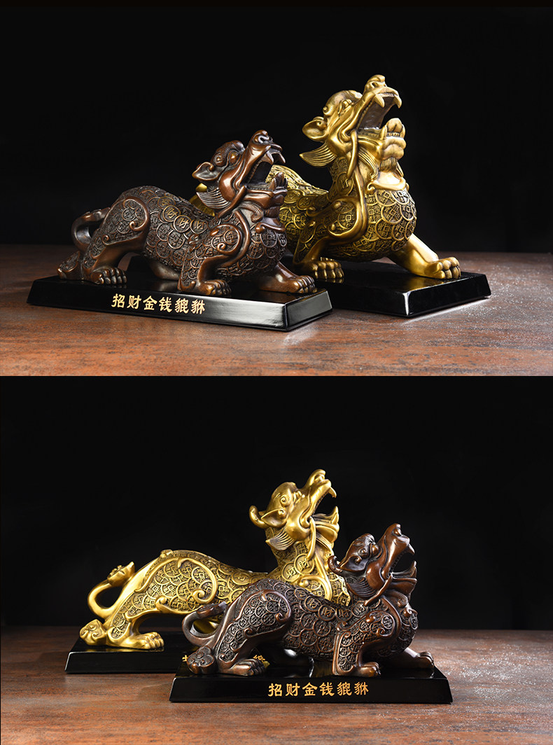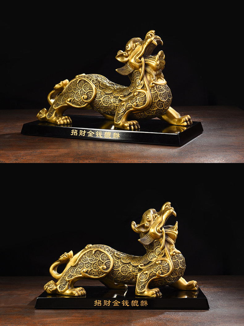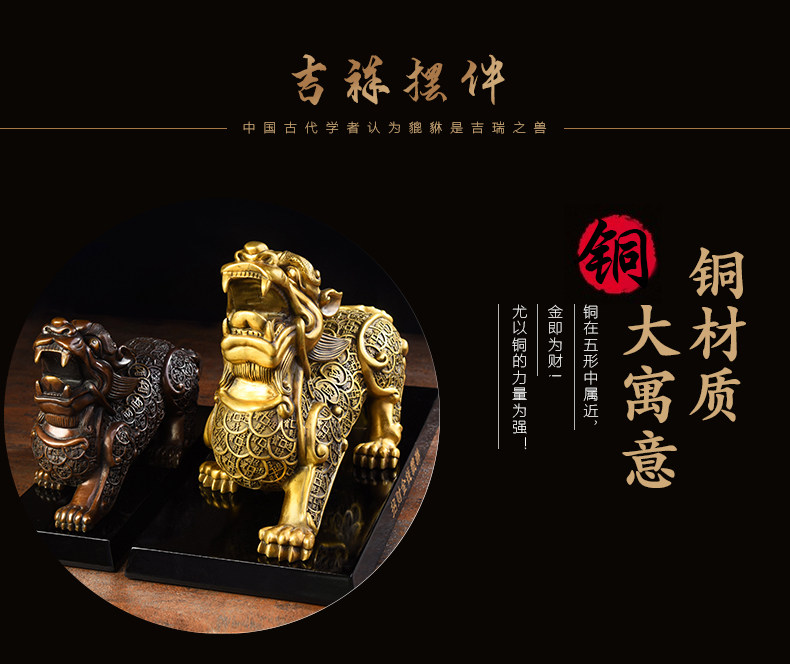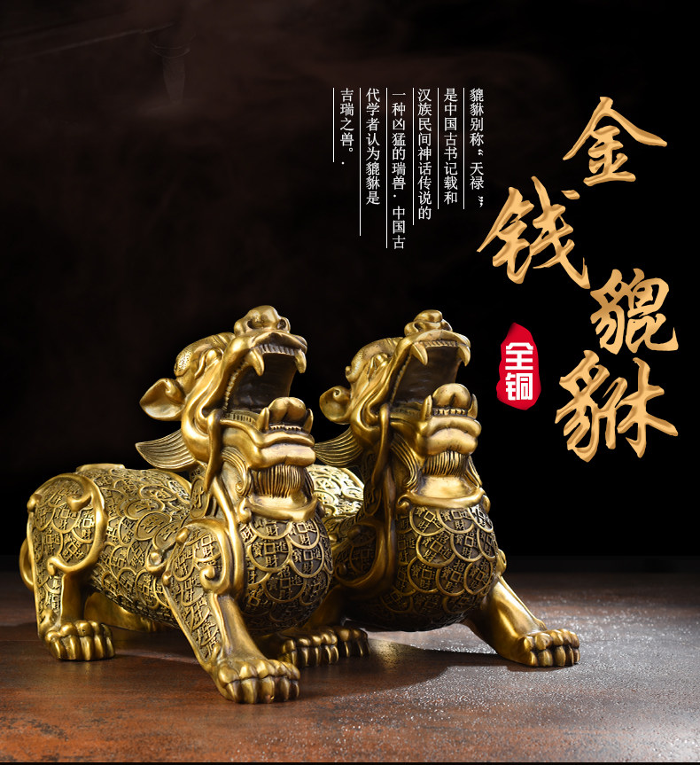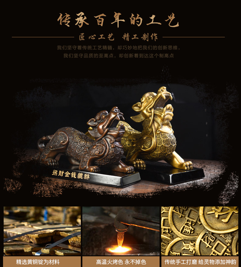 百纳源 纯铜金钱貔貅摆件一对 客厅办公室酒柜家居招财风水装饰品