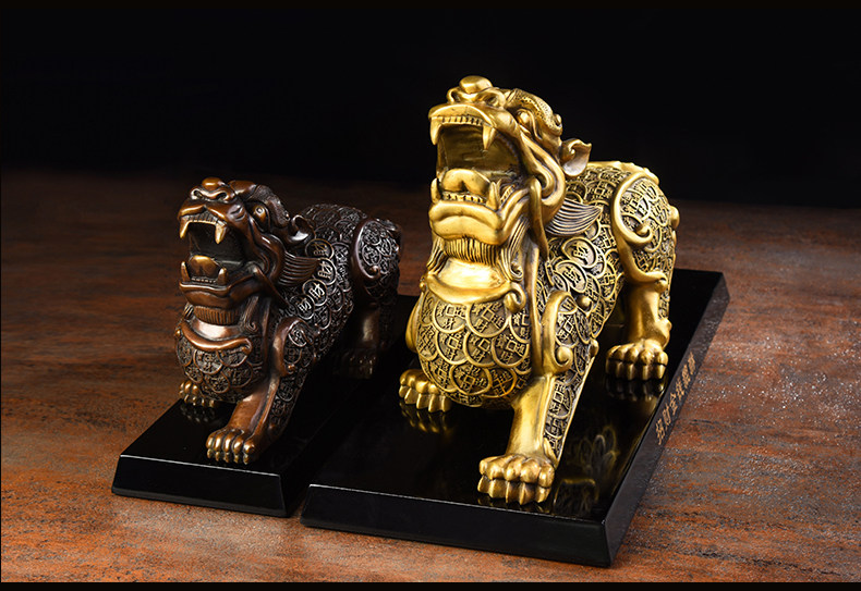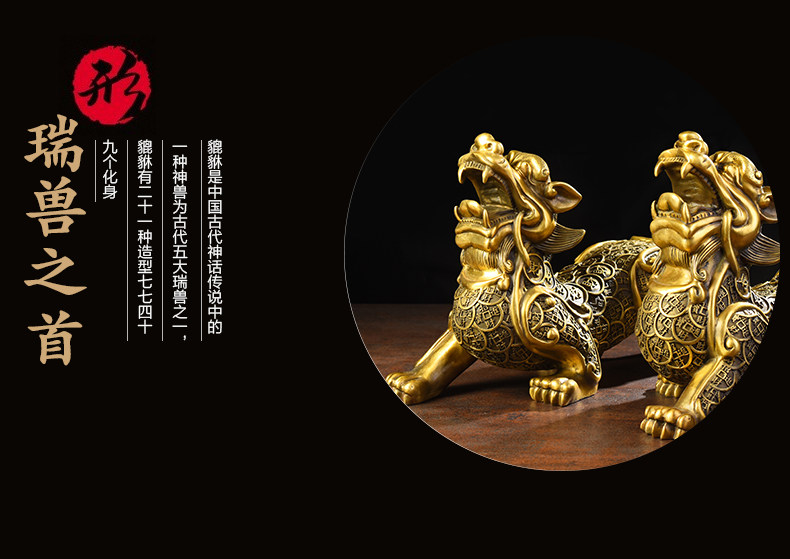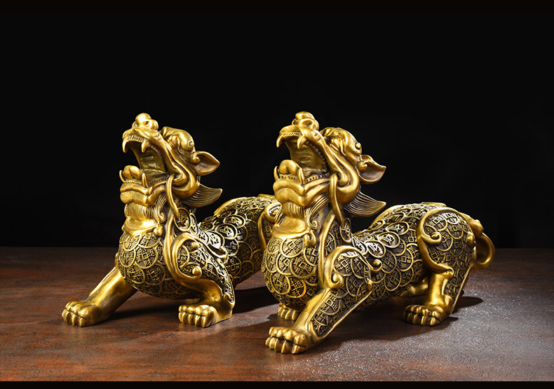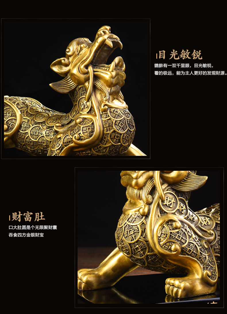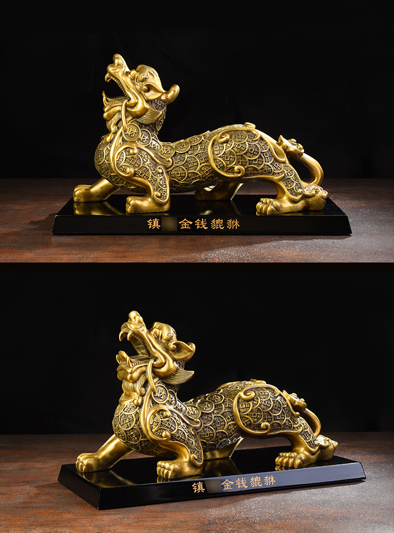 百纳源 纯铜金钱貔貅摆件一对 客厅办公室酒柜家居招财风水装饰品