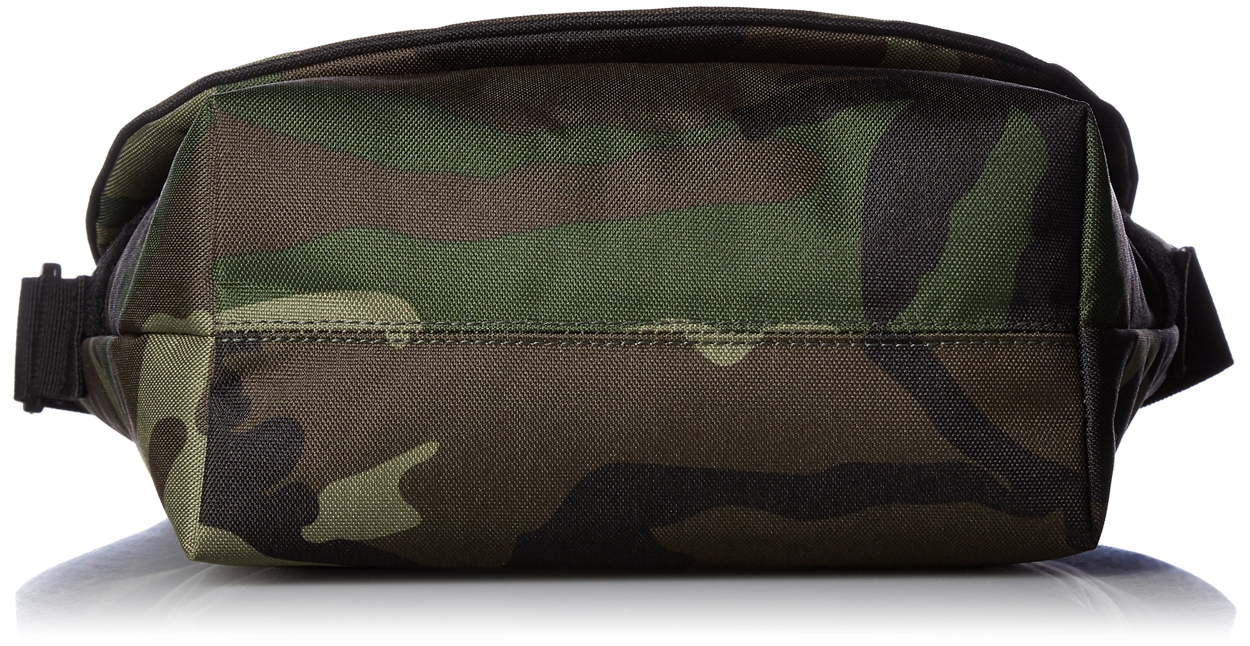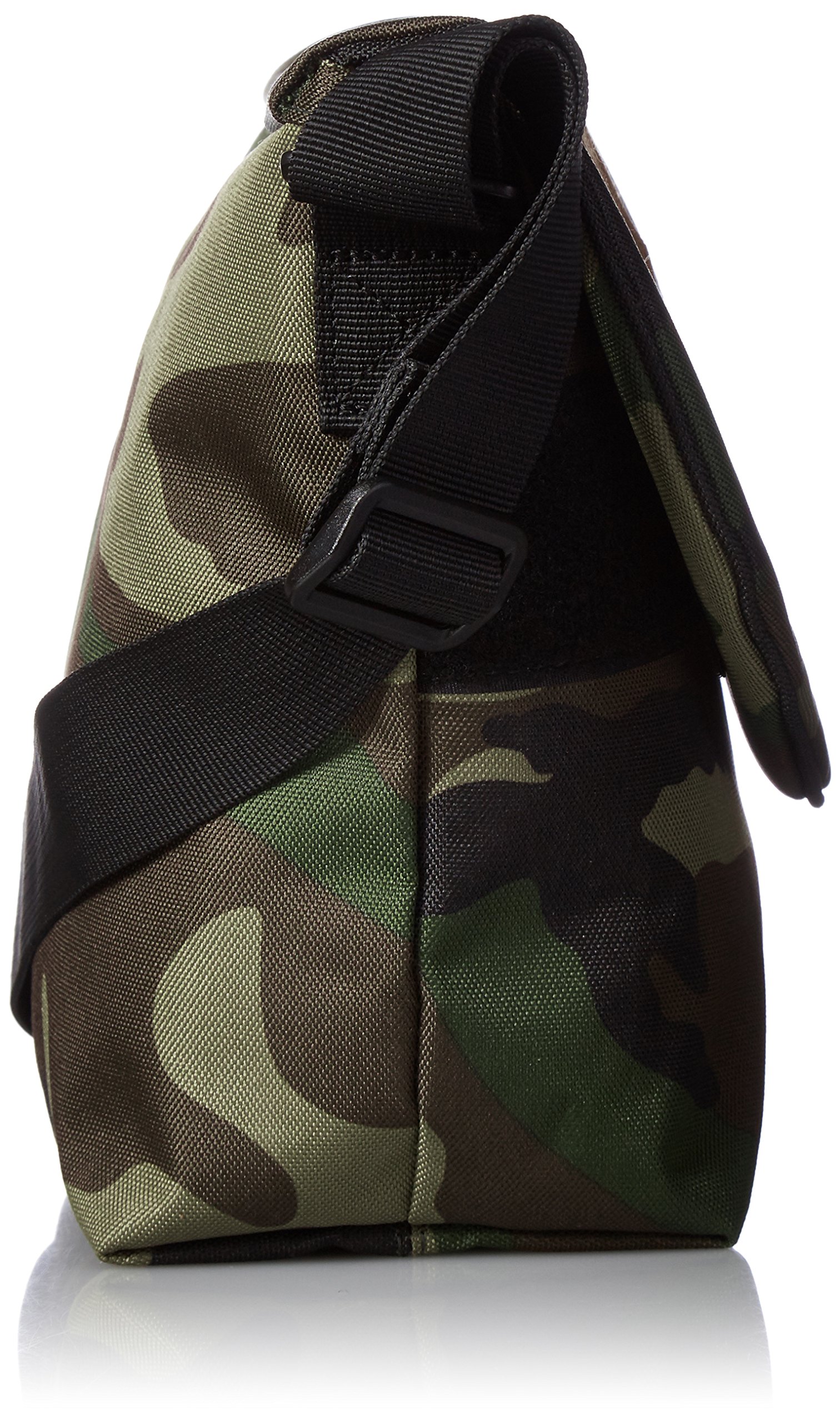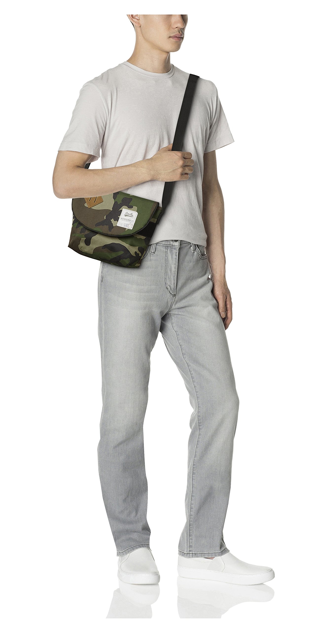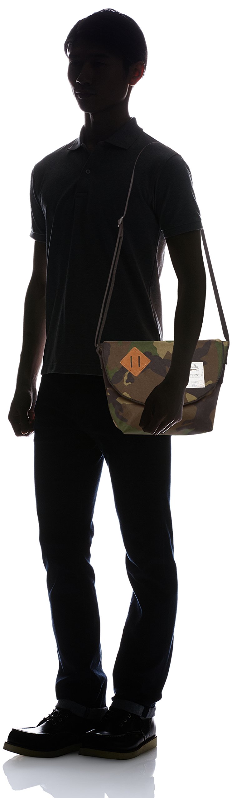 It is a mini messenger bag using a heathery polyester fabric.