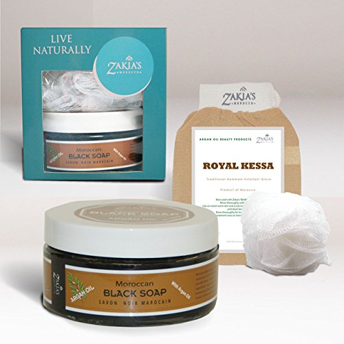 8 oz Moroccan Black Soap with Argan Oil and Kessa Exfoliating Glove
