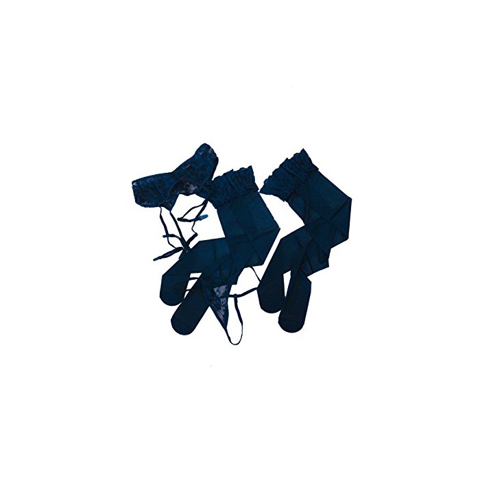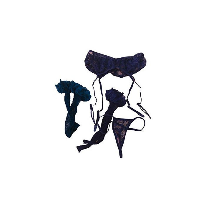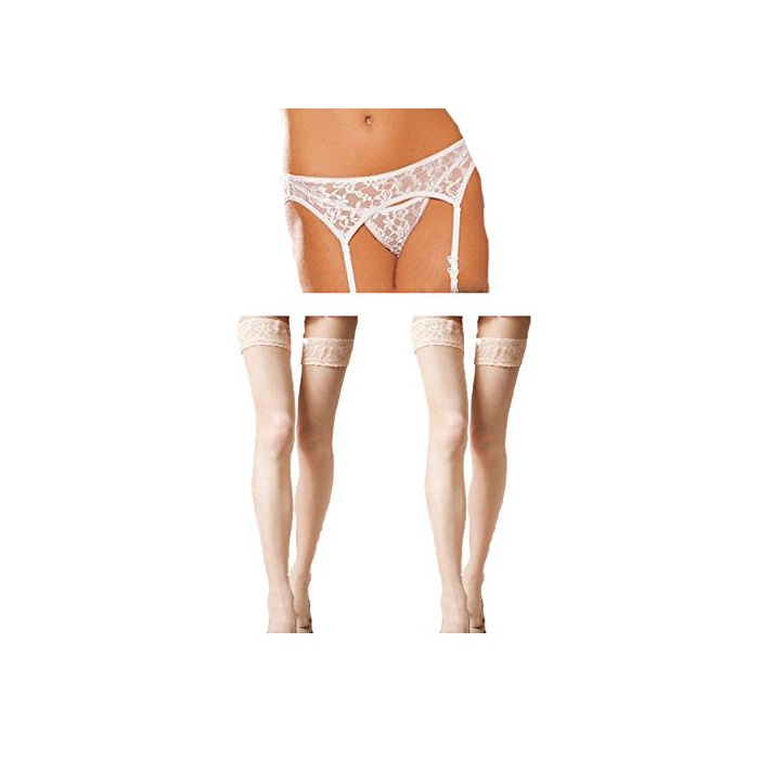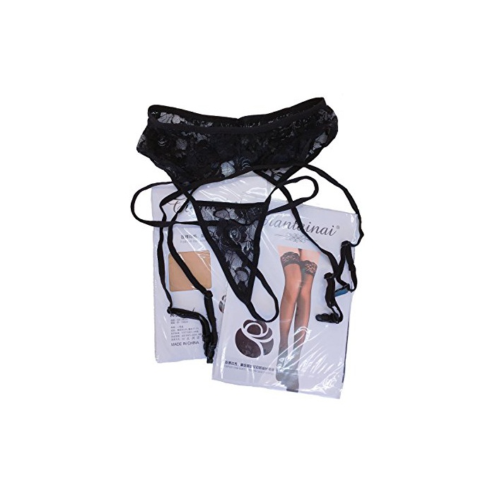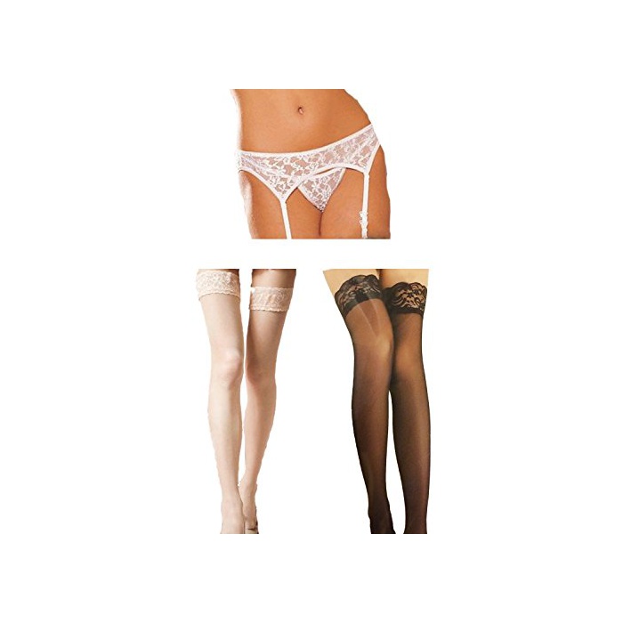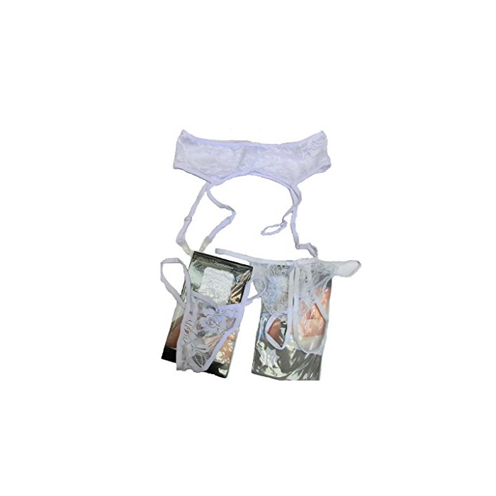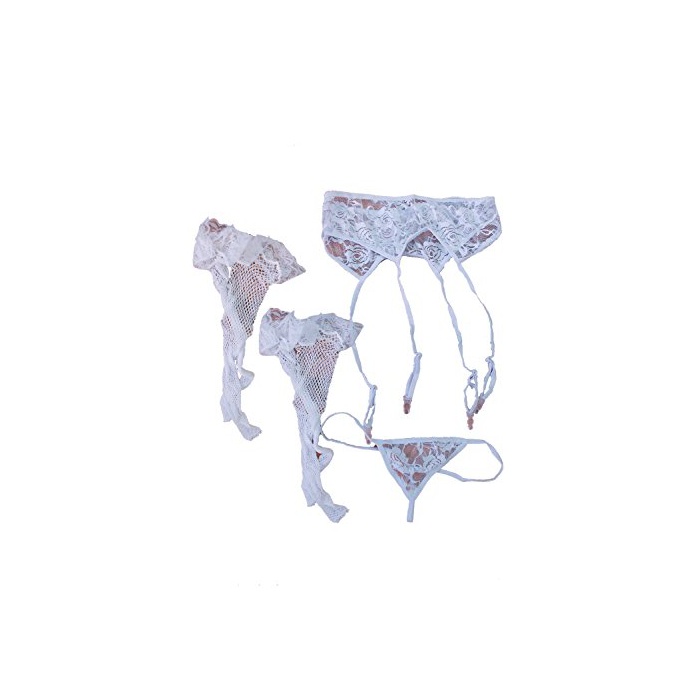 Kunan 가터 벨트 & 망 스타킹 2족 & G 스트링 쇼츠 매혹 섹시 4점 세트 ( 블랙 세트 / 화이트 세트 )