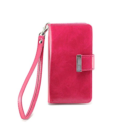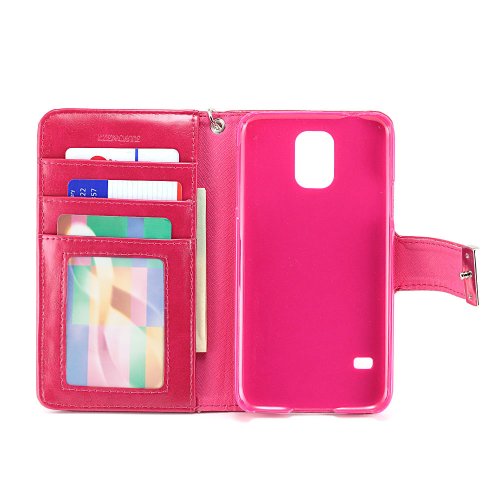 Built in backstand function with a simple flip and fold. Features 2 card slot pocket, 1 ID card slot pocket, 1 cash slot pocket, and a detachable strap.