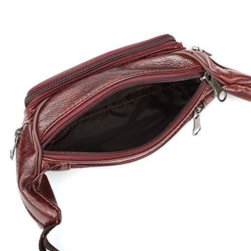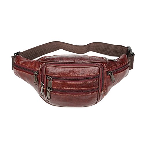 Cowhide Leather Medium Size 7 Pockets Fanny Pack, Waist Pack