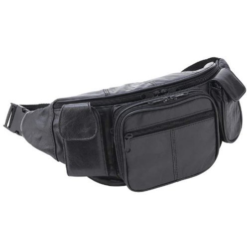 -. Title : Large Black Genuine Lambskin Leather Fanny Pack Waist Bag with Cell Phone Pouch