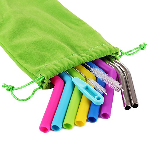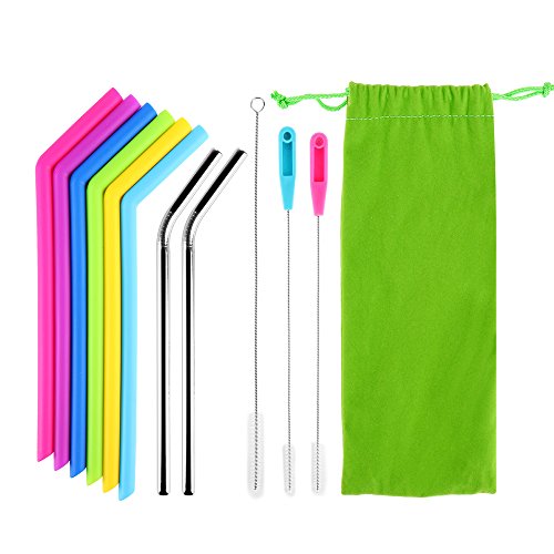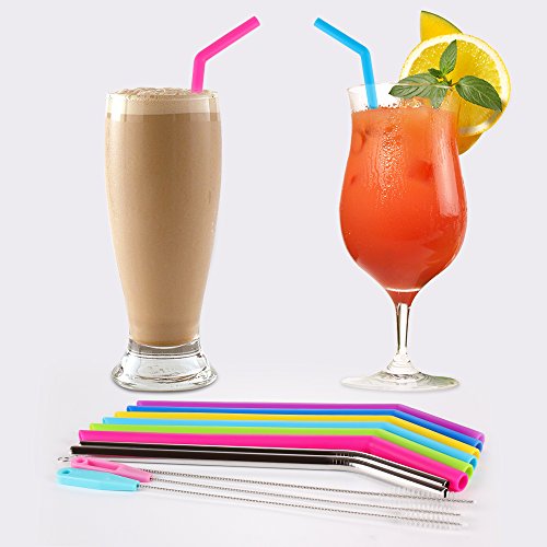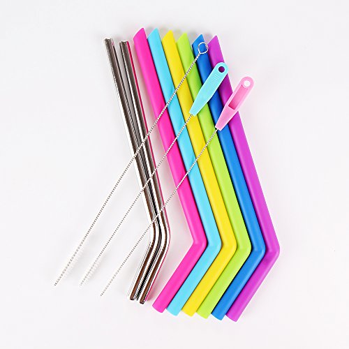 Reusable Silicone Straws Set , Bestwin Rubber Straws and Stainlesss Steel Straws with Cleaning Brushes for 30 oz Tumbler Yeti / Rtic(11pcs)