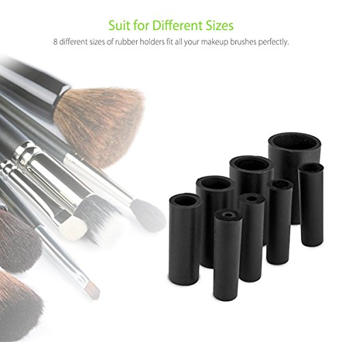 Suit For Different Sizes: 8 different sizes of silicone holders fit all your makeup brushes perfectly in 30mm, 24mm,19mm,15mm,11cm,9mm,7mm and 5mm.
