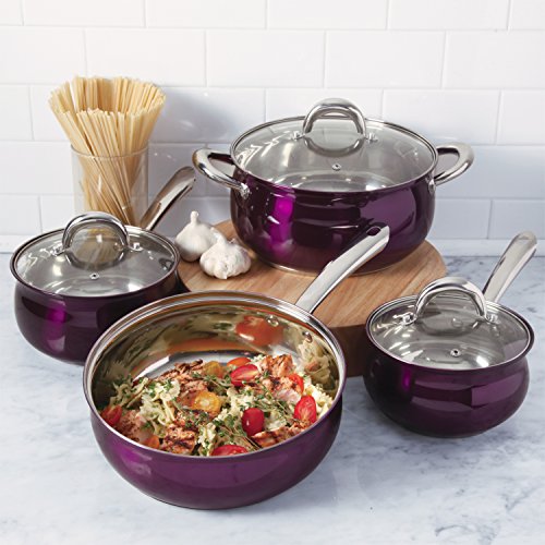 -. Title : Oster Verdone 7 Piece Stainless Steel Cookware Set, Purple
