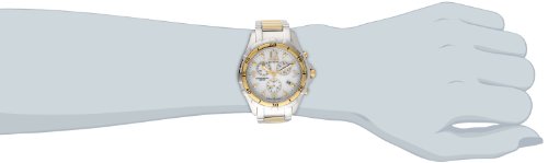 - Feature : Two-tone watch in stainless steel featuring round white dial with alternating pyramid-shape and Arabic hour markers, date window at 4 o'clock, and link bracelet / Japanese quartz movement with analog display / Mineral crystal dial window / Features 24-hour, 60-minute, and continuous seconds chronograph subdials, luminous sword-shape hands, textured crown, bezel engraved with Arabic/baton markers, and fold-over clasp closure / Water resistant to 330 feet (100 M): suitable for snorkeling, as well as swimming, but not diving / Eco-drive is fueled by light so it never needs a battery / Two tone stainless steel bracelet with white dial / Chronograph / Mineral crystal / Water resistant to 330 feet (100 M): suitable for snorkeling, as well as swimming, but not diving