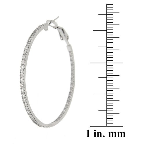 The classic Sterling Silver Cubic Zirconia Large Round Hoop Earrings offer plenty of sparkle for your dinner date or special event. Made from polished 925 sterling silver, the hoops offer added glamour with sparkling white cubic zirconia stones. The round stones are inset around the surfaces of the slender hoops. The earrings are 1.7 inches in diameter, so they offer eye-catching sparkle around your face. They slip into your ears and stay in place with la pousette post backings.Feature