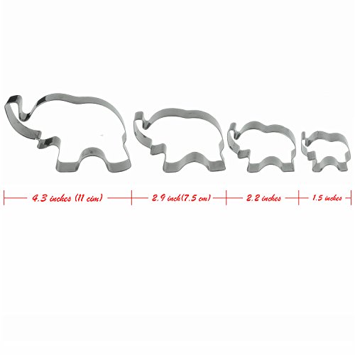 - 4 DIFFERENT SIZES OF ELEPHANT CUTTERS: Cookie cutters set are 4 different sizes of elephant, cute elephant cookie cutter size are diameter approx. 1.9", 2.5", 3.5", 4.8", height are all 0.78 inches (2 cm).