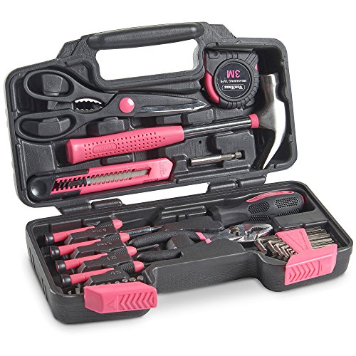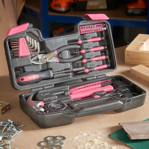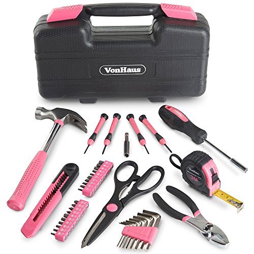 VonHaus Pink Homeowner Tool Set (39-piece) - General Household Hand Tools Kit with Plastic Toolbox Storage Case