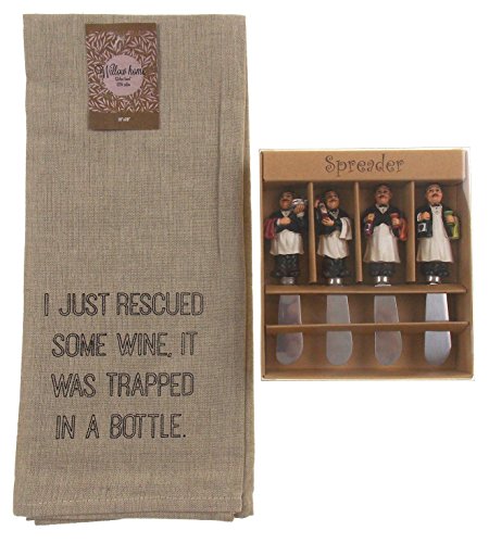 Wine Waiter Resin Cheese Spreaders Set Bundled with Kitchen Towel "I just rescued some wine, it was trapped in a bottle."