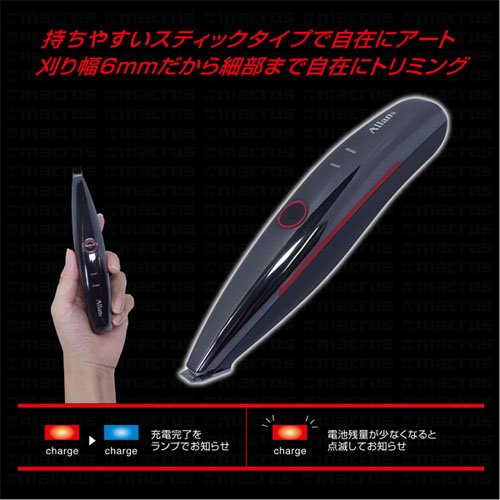 ●持ちやすいスティックタイプで自在にアート 刈り幅6mmだから細部まで自在にトリミング