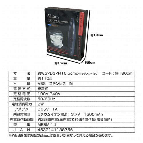 ●寸法:約W3×D3×H16.5cm(アタッチメント含む) コード : 約180cm