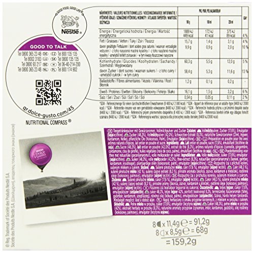 -. Feature : Exotischer Schwarztee mit aromatischen Gewürzen und cremiger Milch* / Würziger Geschmack mit Aromen von Zimt, Kardamon, Ingwer und Nelken / Die Nescafé Dolce Gusto Kapseln regulieren den Druck passend für den perfekten Kaffeegenuss / Entdecken Sie die Nescafé Dolce Gusto Vielfalt mit vielen verschiedenen Sorten!