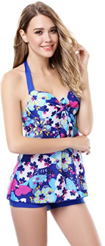 - Title : Women's 2 Piece Floral Print Halter Neck Tankini Top with Shorts