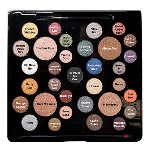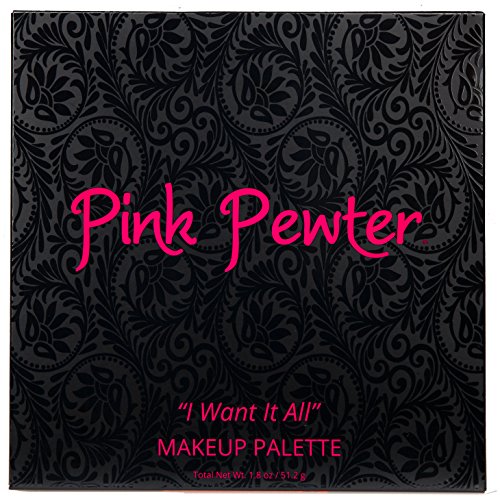 The Pink Pewter "I Want It All" Makeup Palette contains 29 eye shadows and 4 contouring highlighters with an array of color options from earthy, natural hues to glitzy, vibrant colors, leaving the options up to your preference. The pigments have matte and shimmery finishes, because every glam guru loves to have options! From day to night, the "I Want It All" Makeup Palette is all you'll need to create endless options for your personal style. Our eye shadows are made with coconut oil and coffee bean oil, which work together to create a creamy, smooth finish and maximizes color payoff. The formula is soft and easy to work with while not compromising a high-quality pigment. Coconut Oil Benefits: Coconut oil contains hydrating and anti-aging properties that keep the skin moisturized without weighing down the eyelids. Coffee Bean Oil: Coffee bean oil reduces wrinkles so application appears ultra smooth while the ingredient also works to tighten, firm and repair the skin, all while creating a creamy texture for high pigment. Also included: 1 - Dual Sided Brush and 1- Compact Poker Pen (easy removal of pans)Feature