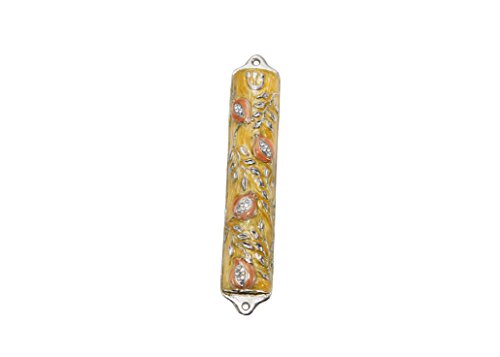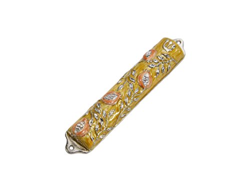Bless This House, Mezuzah Case - Mezuzah Cover, Pomegranate Tree Design Crafted in Heavy Brass, Jerusalem Judaica, Israel, Door Mezuza Case 4" Sunset Color