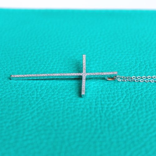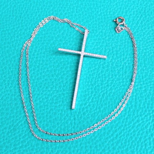 - Feature : This necklace is made of sterling silver and is covered with rhodium for anti-tarnish. Pendant is micro pave set with small diamond-simulated cubic zirconia stones, which shine and sparkle beautifully just like real diamonds. / Necklace available in 16", 18", 20", 24" long or just a pendant. Cross measures 40 x 22 mm (1.5 inch height) / Necklace has spring ring clasp and is stamped 925. / Comes with a gift box and free shipping.