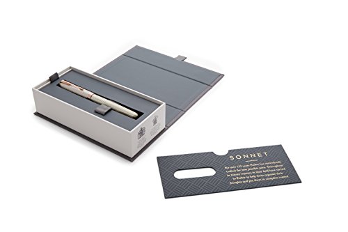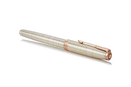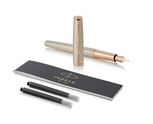 -. Binding : Office Product -. Brand : Parker -. Color : Chiselled Silver with Rose Gold Trim -. EAN : 3501179314846 -. Feature : Chiseled sterling silver cap and barrel accented by rose gold-finished clip and trim / Fountain pen design with 18-karat solid gold nib with rose gold finish / Hand assembled and checked for flawless quality / Available in a range of beautiful designs and finishes / Packaged in a PARKER premium gift box -. Label : Newell Rubbermaid Office -. Manufacturer : Newell Rubbermaid Office -. Model : 1931484 -. MPN : 1931484 -. NumberOfItems : 1 -. PackageQuantity : 1 -. PartNumber : 1931484 -. ProductGroup : Office Product -. ProductTypeName : WRITING_INSTRUMENT -. Publisher : Newell Rubbermaid Office -. Size : Fine nib -. Studio : Newell Rubbermaid Office -. Title : Parker Fountain Pen ,Fine nib, Chiselled Silver with Rose Gold Trim (1931484)