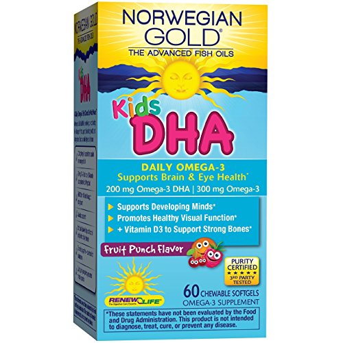 Norwegian Gold Kids DHA supports developing minds and promotes healthy visual function with 200 mg Omega-3 DHA per serving. It also has 500 IU Vitamin D3 per serving to support strong bones, the powerful antioxidant astaxanthin, and fruit punch flavor with no sugar and no fishy aftertaste. These statements have not been evaluated by the Food and Drug Administration. This product is not intended to diagnose, treat, cure, or prevent any disease. * These statements have not been evaluated by the Food and Drug Administration. This product is not intended to diagnose, treat, cure, or prevent any disease.Feature